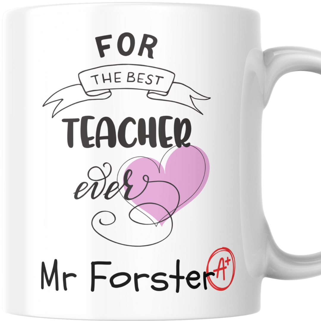Show your appreciation in the most practical (and caffeinated) way with our Best Teacher Ever personalised mug. Add their name for that extra special touch — because great teachers deserve more than an apple. Crafted from durable 11oz white ceramic, this mug is both dishwasher and microwave safe, making it as easy to care for as it is meaningful. Perfect for end-of-year gifts, thank-yous, or just because they’re the best!