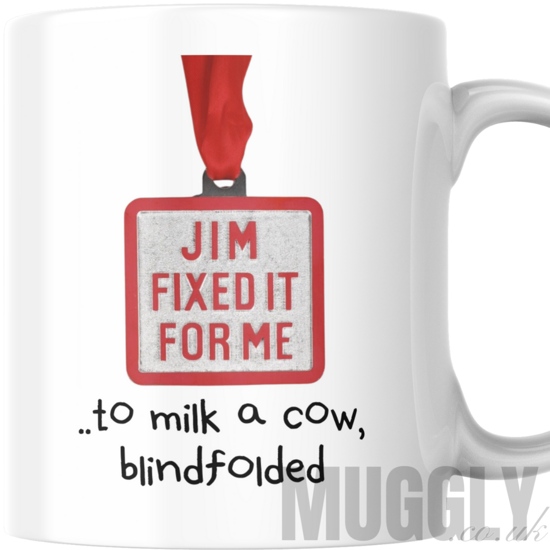 The 'Jim Fixed It' mug is a striking, colour-printed ceramic design perfect for your morning brew. Crafted from durable white ceramic, this 11oz mug is both stylish and practical.