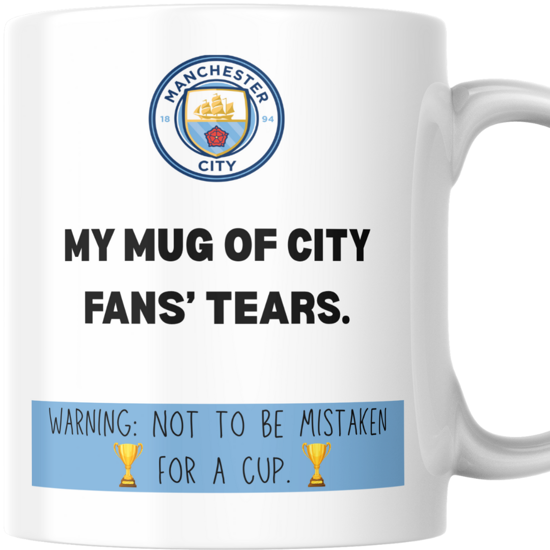 For those who love their coffee as strong as their football rivalries, the “Manchester City Tears” mug is brewed to banter. Perfect for post-match laughs, smug sips, or winding up that one City fan in the group chat. Made from 11oz white ceramic and fully dishwasher and microwave safe, it’s the ideal mug for salty brews and sweet victories.